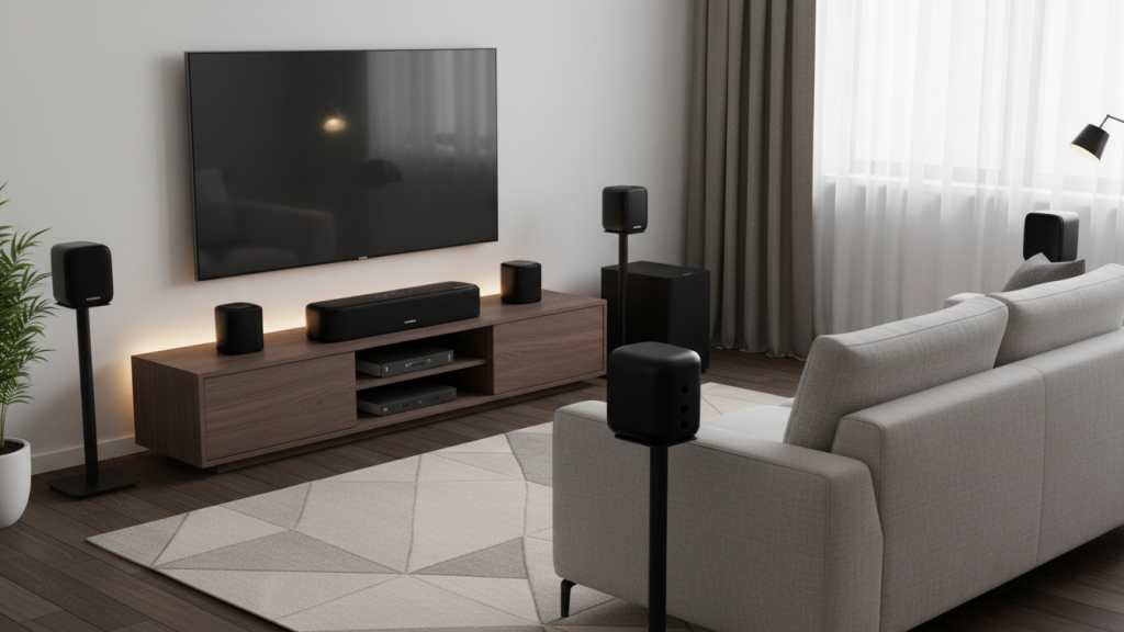 If you want better TV dialogue and fuller music without buying a receiver/amp, powered “TV speakers” usually come in the form of a soundbar (sometimes with a subwoofer and surround speakers). They’re simple: plug in, connect via HDMI ARC/eARC or optical, and you’re done.