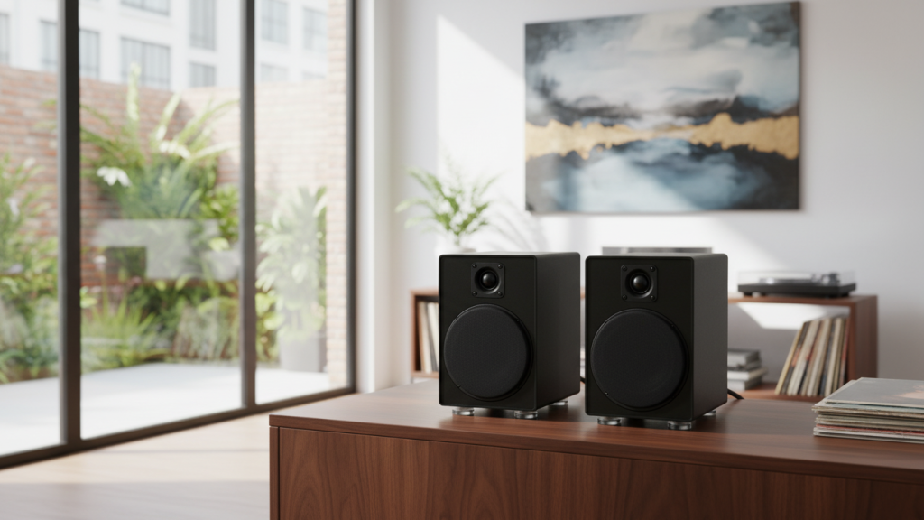 Best for: 5” bookshelf/studio monitors on desks, compact TV console setups, small rooms.